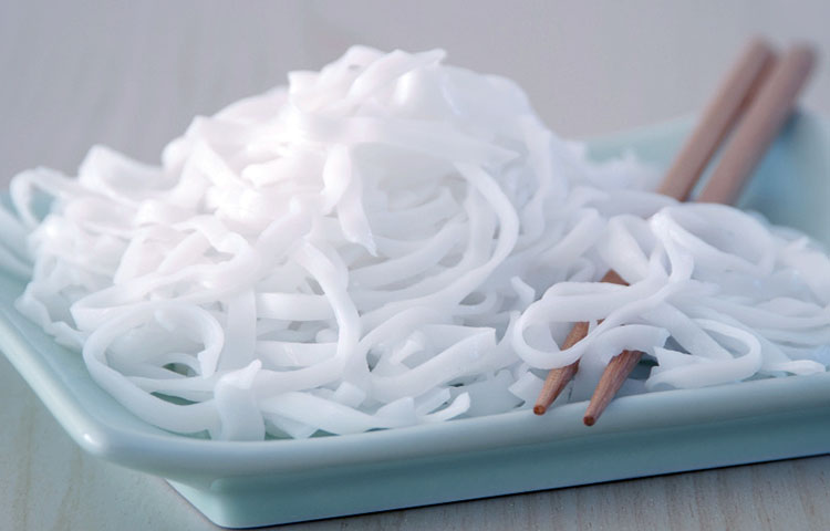 Los fideos de arroz están hechos de harina de arroz molido en húmedo. Estos se comen con guarniciones o en sopas. La harina de arroz glutinoso se usa comúnmente para hacer muchos tipos de pasteles dulces y salados en Asia.